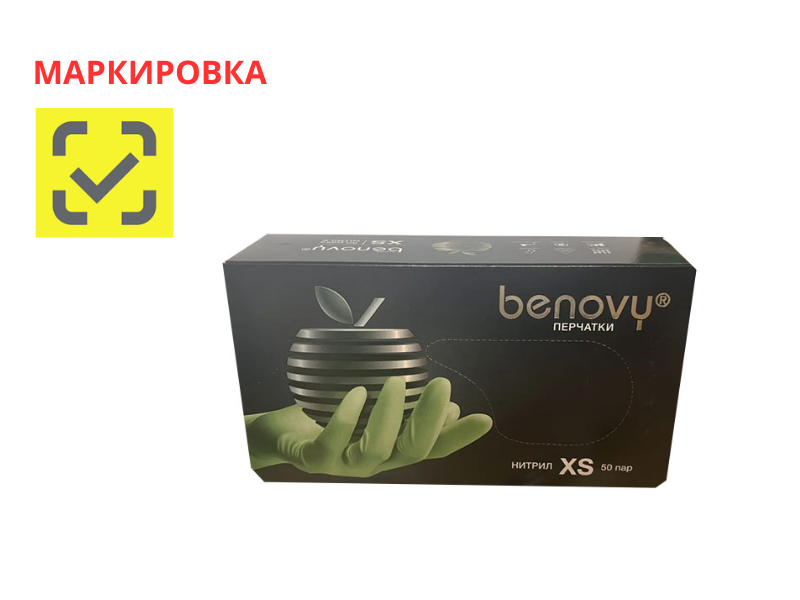 Перчатки медицинские диагностические (смотровые) одноразовые нестерильные "Benovy" нитриловые текстурированные на пальцах, однократной хлоринации, черные, размер XS, 50 пар/упаковка, Китай ("Блю Сэйл Медикал Ко., Лтд.") M226K1