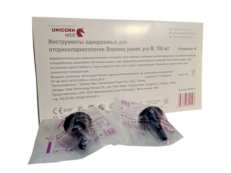 Воронка ушная диаметр 4,0, длина 35 мм пластиковая одноразовая, стерильная, 100 шт/упаковка, Китай (Jiangsu Yada Technology Group Co., Ltd.) OP 00-21