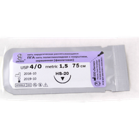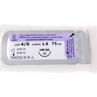 ПГА плетеный фиолетовый МР(1,5), USP(4/0), длина 75 см, игла колющая HR-20, 1/2 окружности, Россия (ООО "Линтекс") 11015A200750