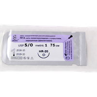ПГА плетеный фиолетовый МР(1), USP(5/0), длина 75 см, игла колющая HR-20, 1/2 окружности, Россия (ООО "Линтекс") 11010А200750