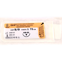 Шелк плетеный черный МP(1), USР(5/0), длина 75 см, игла обратно-режущая HS-20, 1/2 окружности, Россия (ООО "Линтекс") 18010В200750