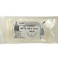 Капрон плетеный неокрашенный МР(3,5), USP(0), 75 см, игла колющая HR-30, 1/2 окружности, Россия (ООО "Линтекс") 15135A300750