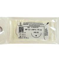Капрон плетеный неокрашенный МР(3,5), USP(0), 75 см, игла колющая HR-35, 1/2 окружности, Россия (ООО "Линтекс") 15135A350750