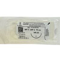 Капрон плетеный неокрашенный МР(5), USP(2), 75 см, игла колющая HR-35, 1/2 окружности, Россия (ООО "Линтекс") 15150A350750