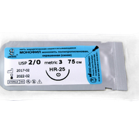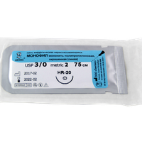 Монофил синий МР(2), USP(3/0), длина 75 см, игла колющая HR-30, 1/2 окружности, Россия (ООО "Линтекс") 13220A300750