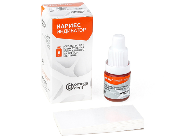 Кариес индикатор (жидкость) средство для обнаружения пораженного кариесом дентина, 8 мл, Россия (ООО "НКФ Омега-Дент")