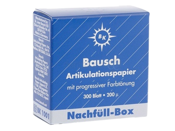 Бумага артикуляционная Бауш ВК 1001-1002 (200 мкр), синяя, 300 листов, Германия (Dr. Jean Bausch GmbH & Co. KG) Артикуляционная копирка прямая 200 мкрн., 300 листов. Цвет синий.