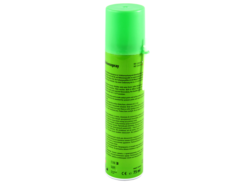 Средство для маркировки окклюзионной поверхности зелёного цвета. Равномерное точное нанесение посредством распыления, экономичность в употреблении.
