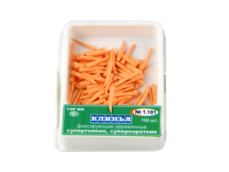 Клинья фиксирующие деревянные (оранжевые), 100 шт/упаковка, Россия (ООО "ТОР ВМ") 1.181 Тонкие, короткие деревянные клинья - 100 шт. Имеют анатомическую форму. Изготавливаются из клена. ...