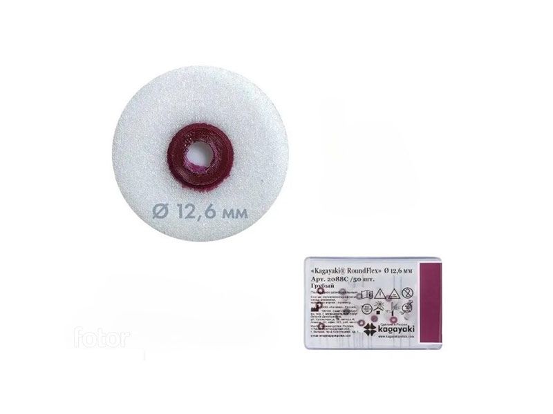 Полир Диск шлифовальный "Kagayaki RoundFlex" грубый бордо, диаметр 12,6 мм., 50 штук/упаковка, Россия (ООО "Кагаяки") 2088С/50
