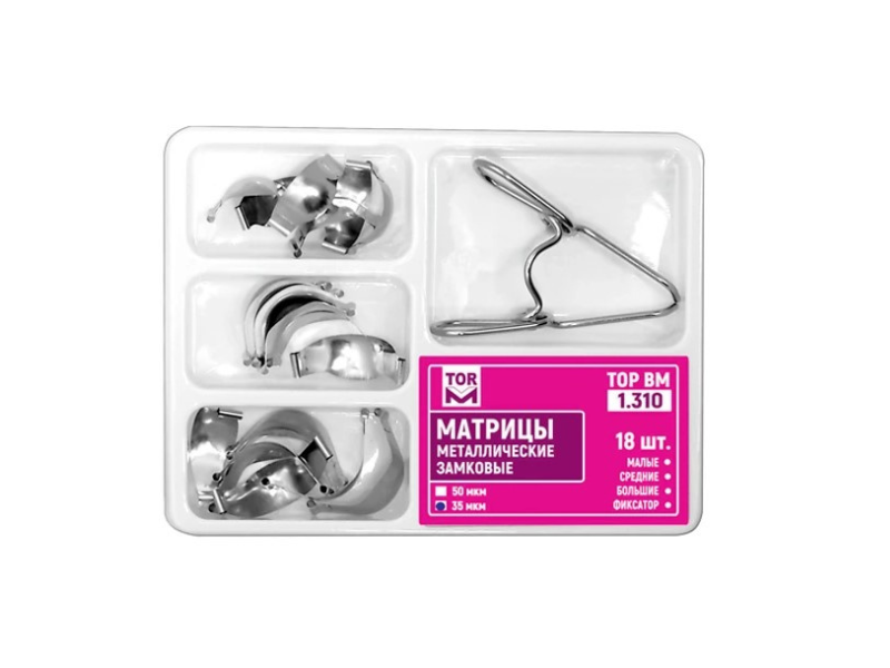 Матрицы металлические контурные, толщина 35 мкм (замковые с фиксирующим устройством замыкающий малым), 18 шт/набор, Россия (ООО "ТОР ВМ") 1.310(т35)