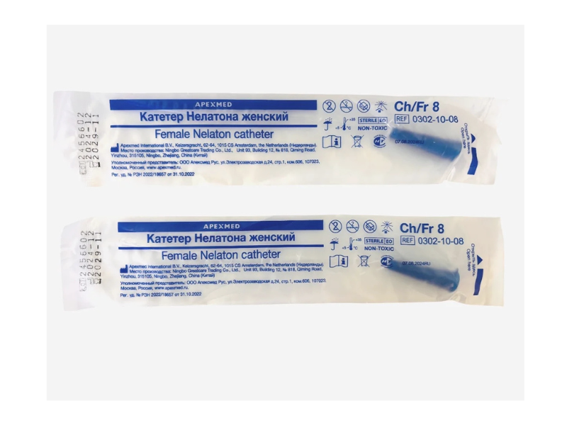Катетер урологический Нелатона женский СН/FR8 стерильный, 80 штук/упаковка, Нидерланды (Apexmed International B.V.) 0302-10-08