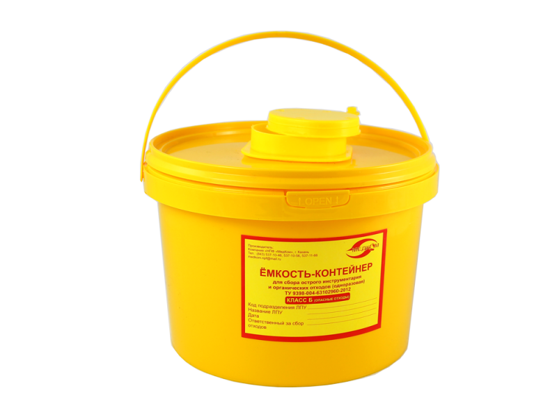 Емкость-контейнер МК-01-"МедКом" класса Б, 2 л для сбора острого инструментария, одноразовый, Россия (НПФ "МедКом")
