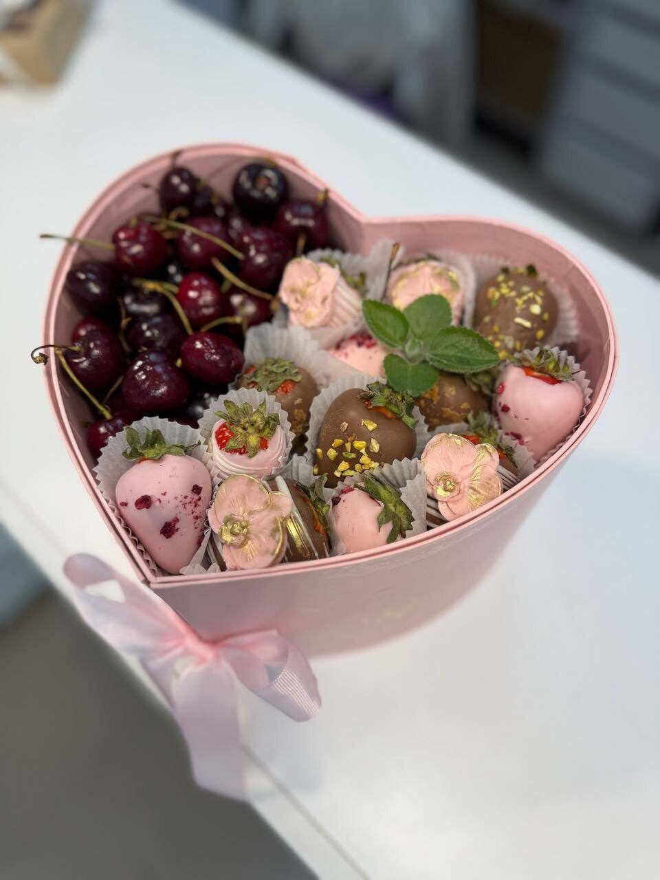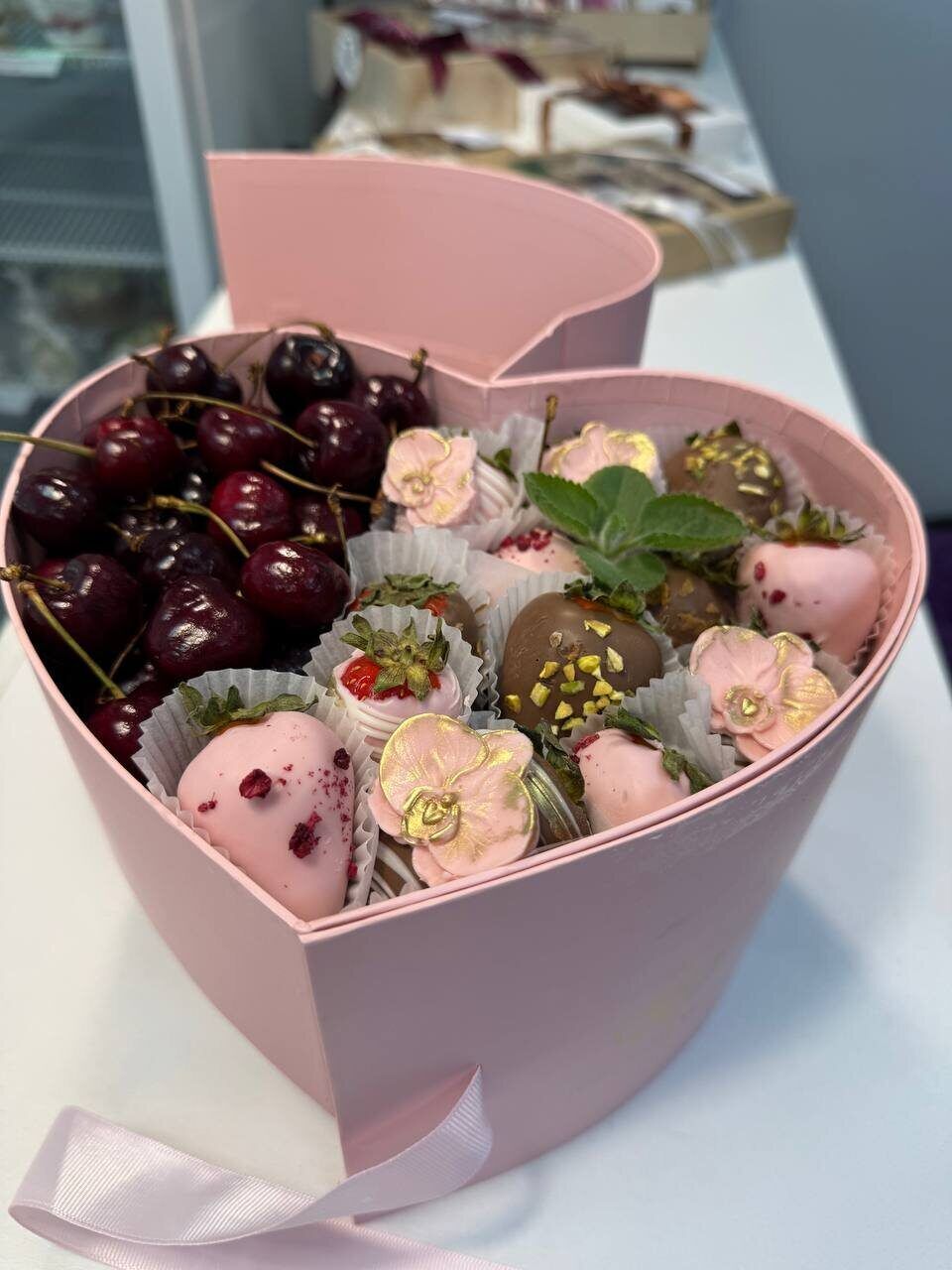Сердце с клубникой и конфетами Каприз