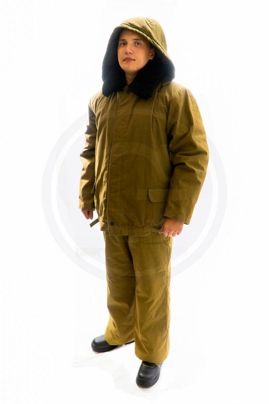 тк: "Палаточное полотно" ; куртка и брюки; цвет: хаки; утеплитель: трехсл.ватин; воротник: искусственный мех; ГОСТ 29335-92