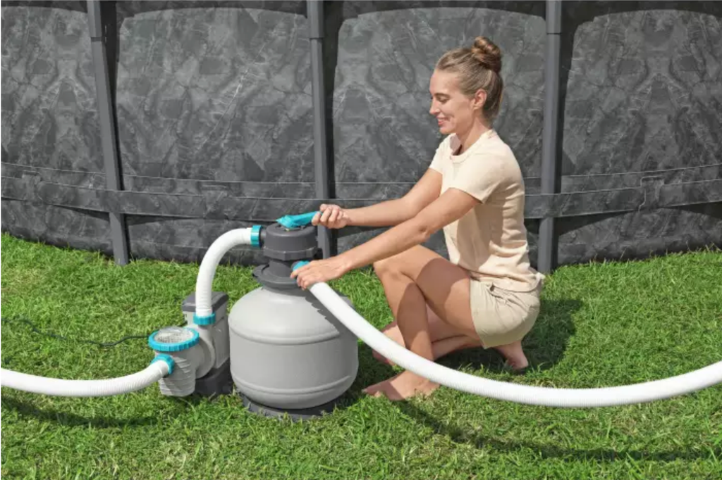 · Песочный фильтрующий насос #58499 8,327 л / ч, 220-240 против U, с таймером, для заполнения требуется песок (45 кг) или высокоэффективные фильтрующие шарики Polysphere™ #58475 (1260 г)