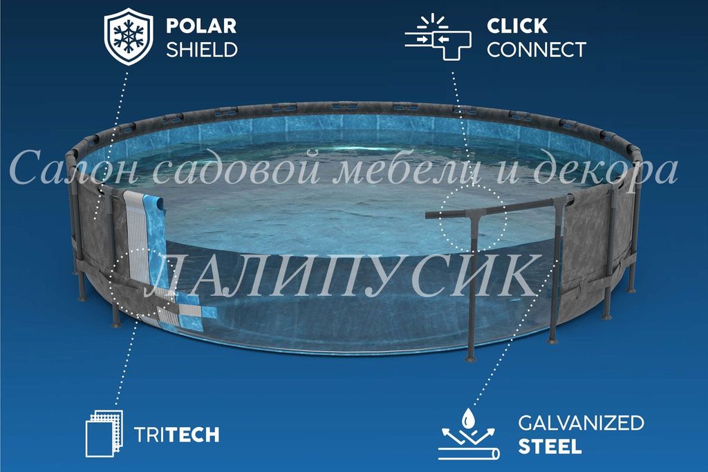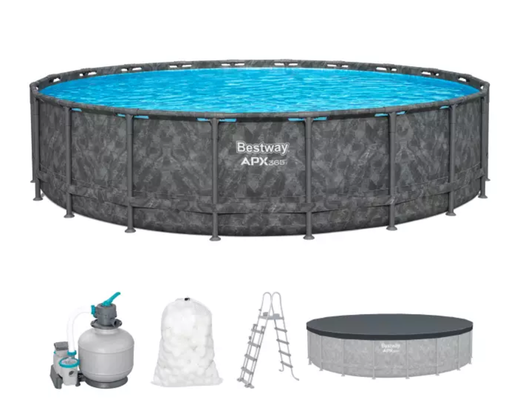 Сборный круглый каркасный бассейн 610х132см. серии "APX 365" с песочным фильтрующим насосом. Установка круглый год: бассейны APX 365 — первые наземные бассейны на рынке, оснащенные технологией защиты от атмосферных воздействий Polar Shield. Вы можете обустроить бассейны летом для семейного купания и оставить их зимой — нет необходимости хранить их вне сезона! Polar Shield защищает покрытие бассейна от вредных погодных воздействий даже при низких температурах. Прочная конструкция: бассейн изготовлен из коррозионностойкой оцинкованной стали и рассчитан на максимальную долговечность. Каркас изготовлен из 100% оцинкованной стали, что предотвращает появление ржавчины и атмосферных повреждений. Благодаря соединениям ClickConnect бассейн легко настроить — не требуются дополнительные инструменты или аксессуары. Т-образные соединители предотвращают контакт металла с металлом, повышая устойчивость к ржавчине. Прочная облицовка бассейна TriTech изготовлена из прочного трехслойного материала, усиленного для повышения прочности и устойчивости к разрыву. TriTech на 15% более устойчив к разрыву, на 33% более устойчив к растяжению и на 83% более долговечен, чем стандартный ПВХ, поэтому ваш бассейн прослужит много лет.