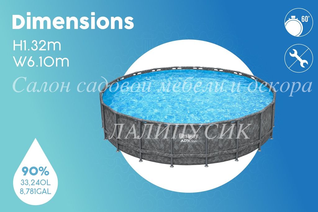 Круглый каркасный бассейн APX 365 610х132 см. Морозостойкий!
