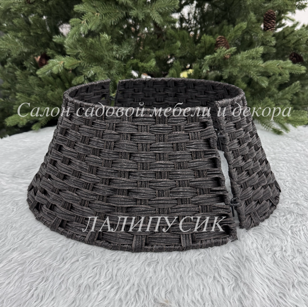 Корзина под елку из искусственного ротанга состоит из двух частей (половинок), соединятся с помощью 2 крючков и колец на каждой части корзинки