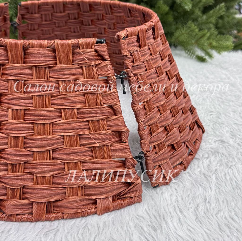 Корзина под елку из искусственного ротанга состоит из двух частей (половинок), соединятся с помощью 2 крючков и колец на каждой части корзинки