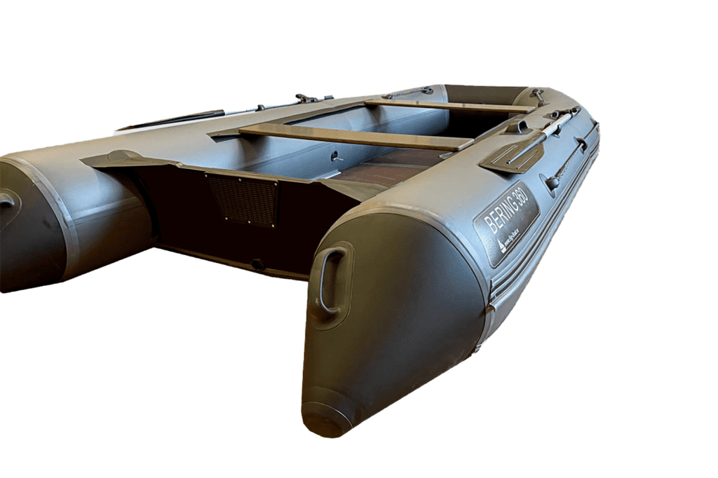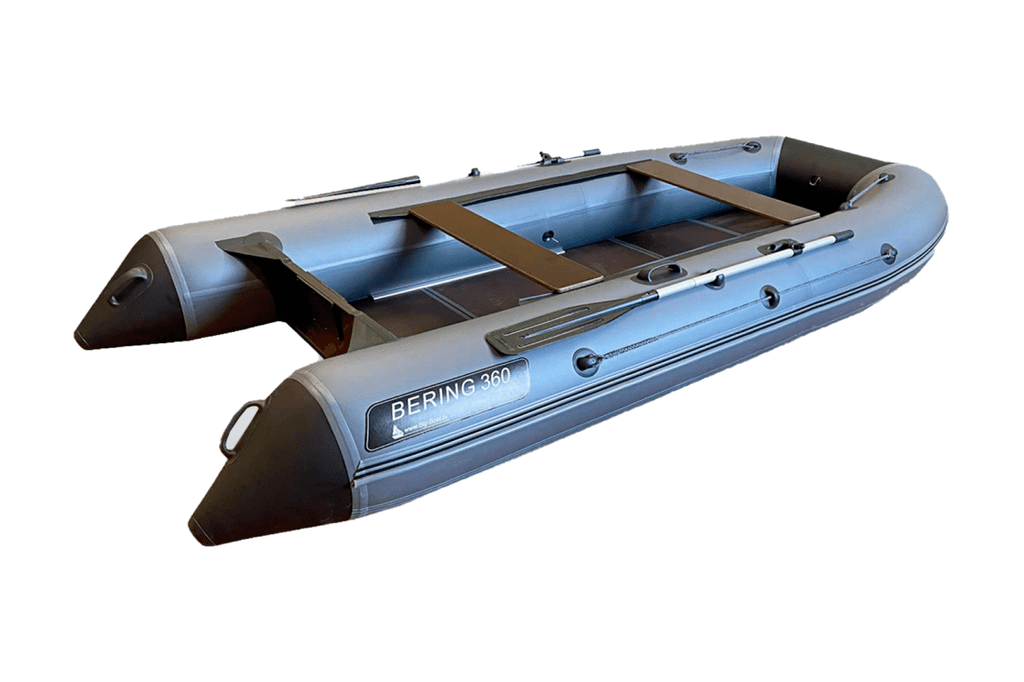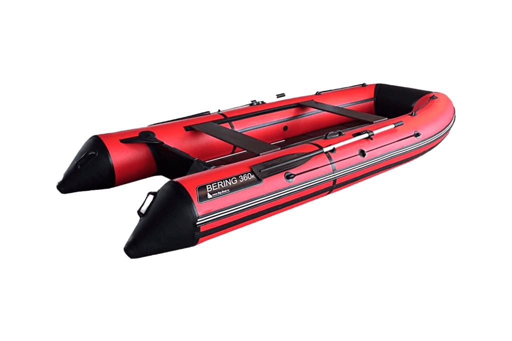 Моторная ПВХ лодка Bering 360K (книжка) изготовлена из армированного поливинилхлоридного (ПВХ) материала финской компании Scantarp. Благодаря натянутому вдоль бортов леерному тросу обеспечивается безопасность находящихся в кокпите людей. Весла фиксируются в стояночном положении уключинами. Такая лодка практична для рыбалки вдвоем, для сплава по рекам, а также для спокойных водных прогулок, хорошо подходит для охоты. Рекомендуемое число пассажиров в лодке составляет 5 человек.