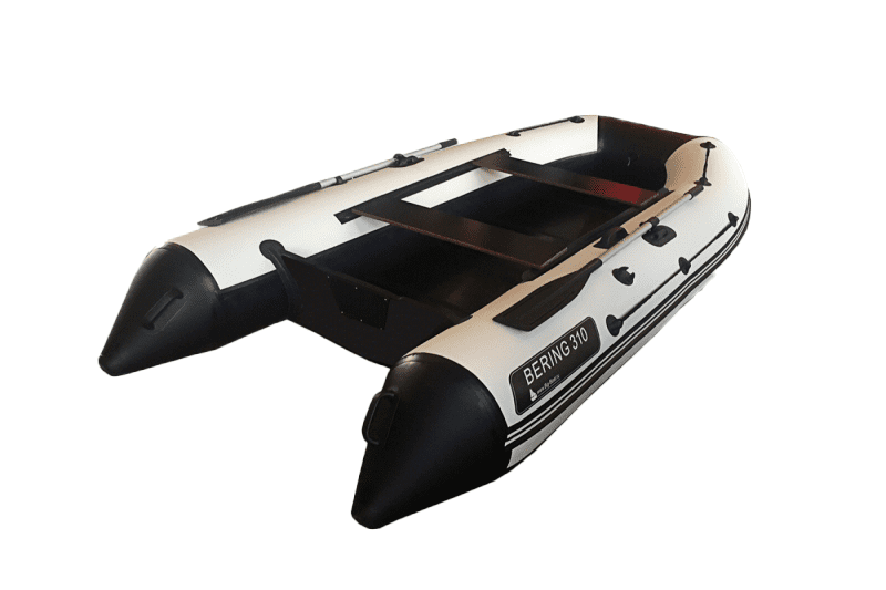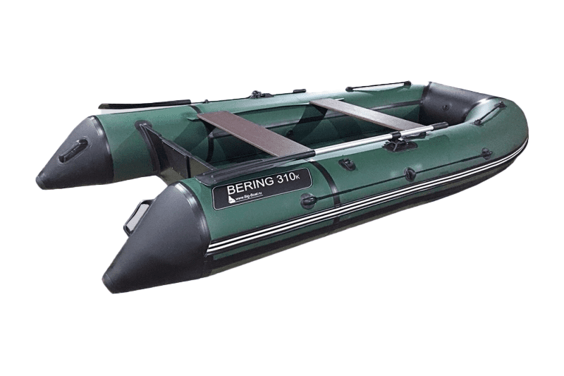 Моторная ПВХ лодка Bering 310K изготовлена из армированного поливинилхлоридного (ПВХ) материала финской компании Scantarp. Благодаря натянутому вдоль бортов леерному тросу обеспечивается безопасность находящихся в кокпите людей. Весла фиксируются в стояночном положении уключинами. Такая лодка практична для рыбалки вдвоем, для сплава по рекам, а также для спокойных водных прогулок, хорошо подходит для охоты. Рекомендуемое число пассажиров в лодке составляет 4 человека.