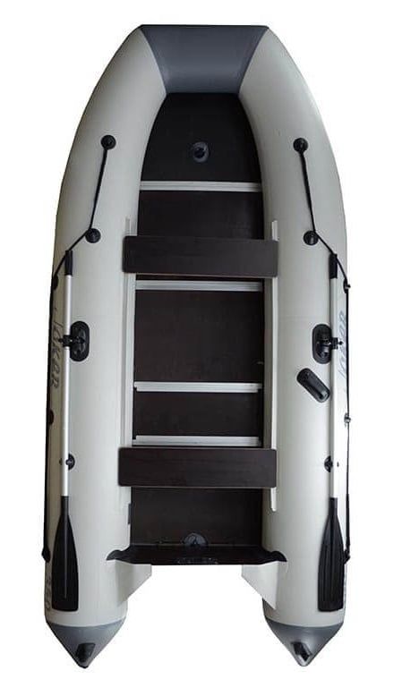Надувная лодка имеет четко выраженную килеватость, что придает ей высокую прочность. Это достигается благодаря использованию плотной ткани ПВХ с плотностью 750 г/м2 для изготовления баллонов и 850 - для днища. Сложный рельеф дна наделяет лодку хорошей устойчивостью и уверенным выходом на глиссирование.