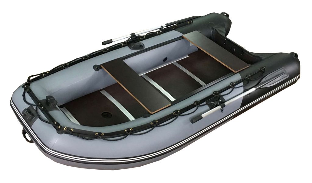 Надувная моторная лодка Камыш 3200 Стандартная серия с Л-образным корпусом, разделенным внутренними перегородками на три автономных отсека и вклеенным жестким транцем. Транец килеватый с вмонтированным сливным клапаном. К корпусу лодки приклеено килеватое тканевое днище с надувным килем. На борта лодки приклеены поворотные уключины, фиксаторы весел, причальная шайба, пояса для крепления подвижных сидений, три формовые ручки для переноски лодки, шайбы наружного и внутреннего леера. На борт лодки приклеен гребешковый привальный брус. Лодка изготовлена из ткани ПВХ весом 850 гр/м2. Рабочее давление 0,25 кгс/см2. «Нога» подвесного мотора 380мм или 440мм.