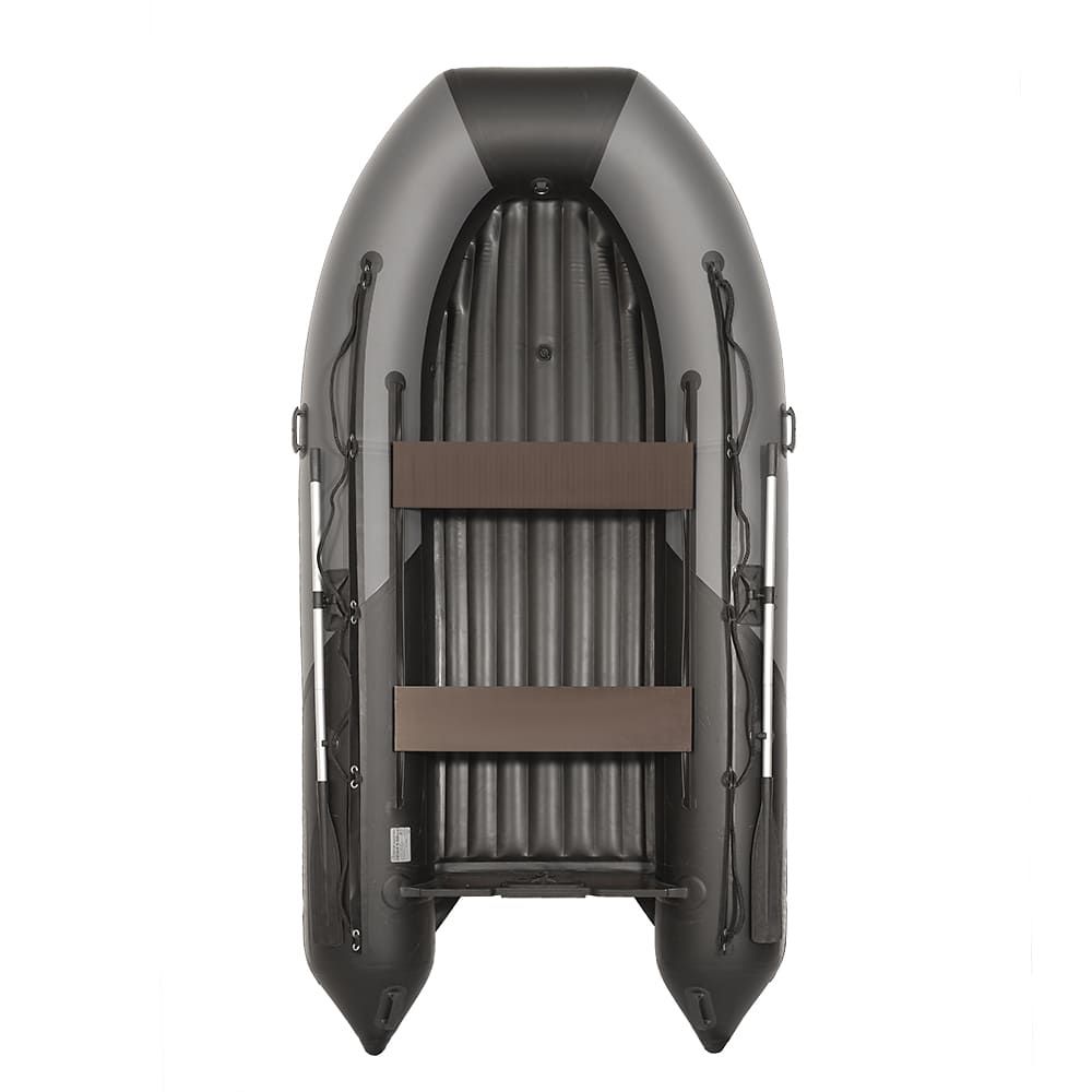 Килевая моторная лодка с НДНД (надувное дно низкого давления) реданного типа. Особенности конструкции реданов, разработанные конструктором завода позволили повысить эксплуатационные свойства и исключить разрыв перегородки. Лодка с таким дном имеет мягкий ход по волне и более высокие скоростные качества по сравнению с лодками с жестким дном. Весят они меньше (от 5 до 11кг) , просто и легко собираются и разбираются, удобны в транспортировке. У них выше устойчивость на волне и грузоподьемность.
