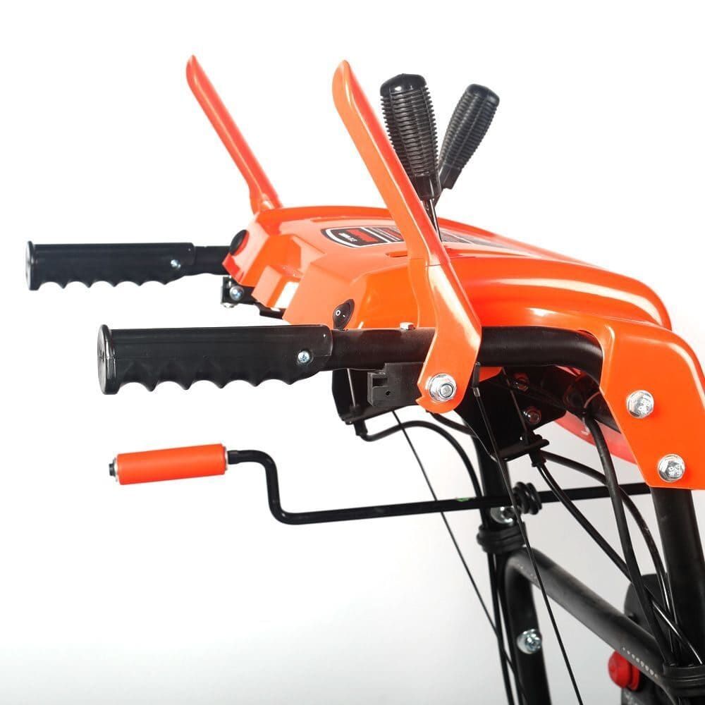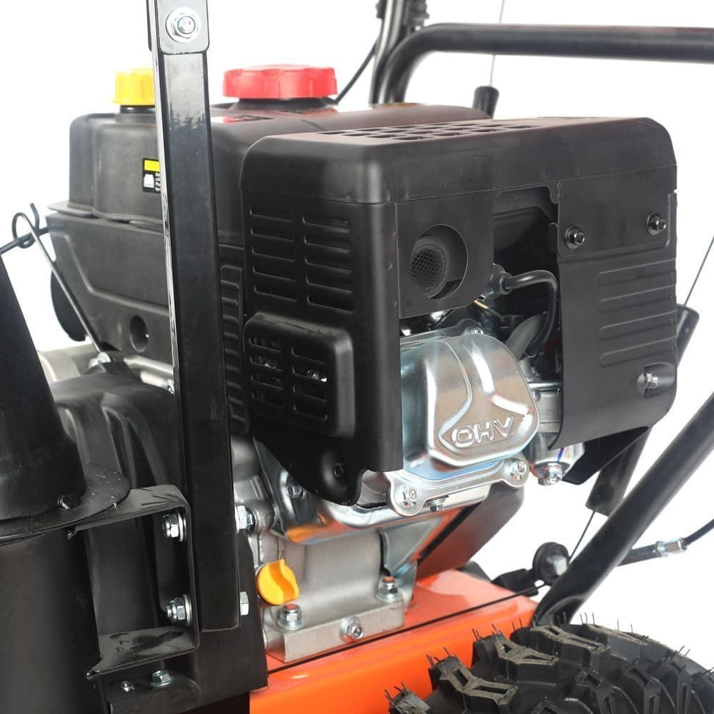Снегоуборщик мощностью 6,5л.с. имеет все необходимое для комфортной работы: электростартер для запуска в самые сильные морозы, фара для работы в темное время суток и большой диапазон регулировок скоростей, который позволит подстроиться под различные условия работы. В конструкции снегоуборщика используются только подшипники, а не втулки. Шестерня редуктора шнека выполнена из бронзы, что в десятки раз увеличивает ресурс снегоуборщика. На заводе производится регулировка и обкатка каждой единицы техники в собранном состоянии.
