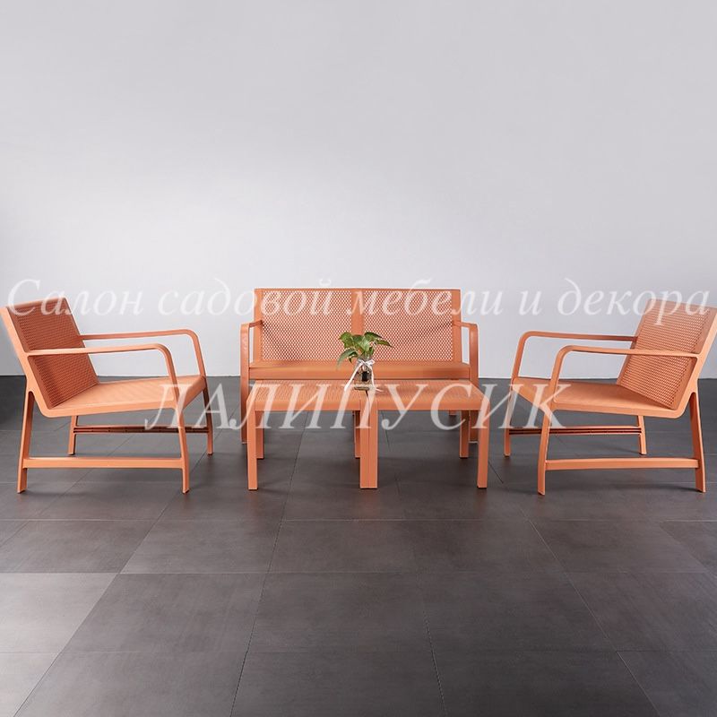 Комплект мебели из полипропилен для террасы и сада (оранжевый)