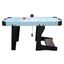 Стол оборудован электронным табло для подсчета очков. Питание счетчика: 2 батарейки, типа ААА. Складная конструкция позволит экономить место в перерывах между играми. Корпус выполнен из специально обработанного МДФ, сверху покрытого прочным пластиком. Мощный компрессор подает воздух через отверстия. Напряжение: 220В.