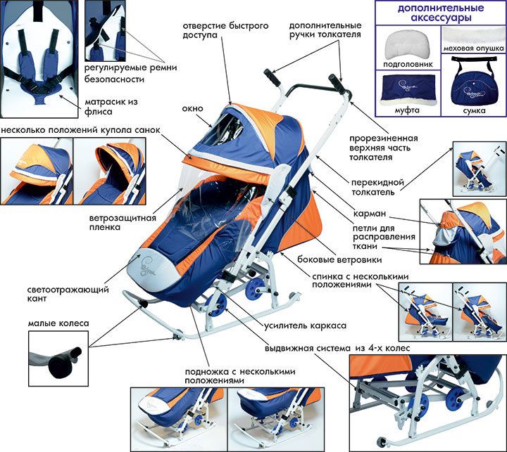 Санки-коляска универсальные с выдвижными колесами