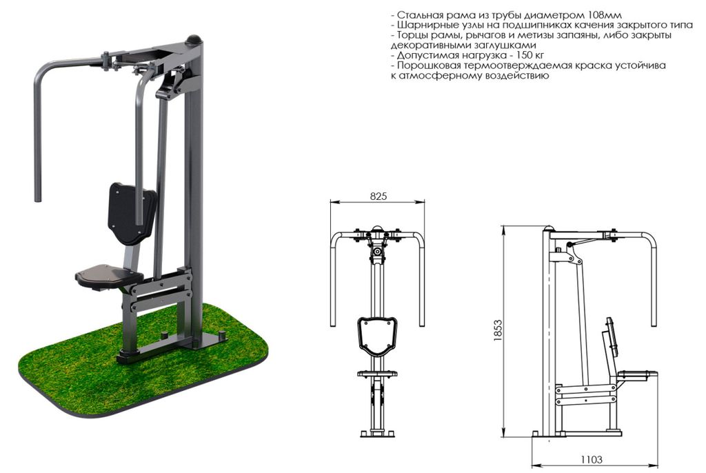 • Хваты для рук – рычаги из трубы диаметром 42,3мм;