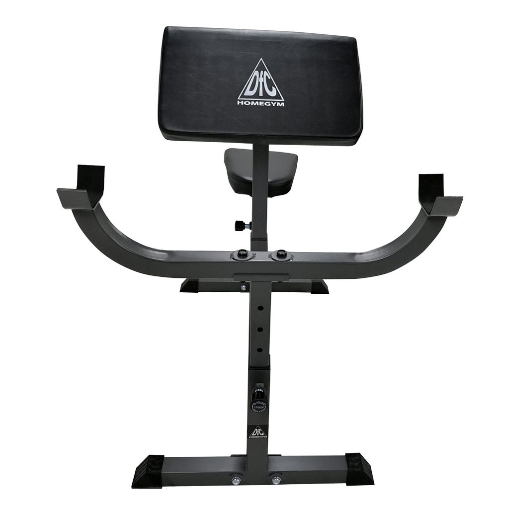 Сиденье, парта для бицепса и стойки под штангу регулируются по высоте. 4 уровня регулировки.