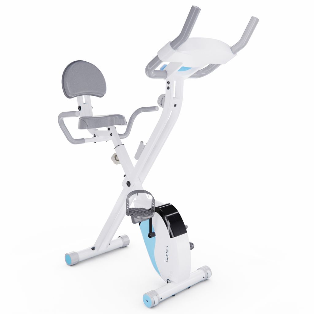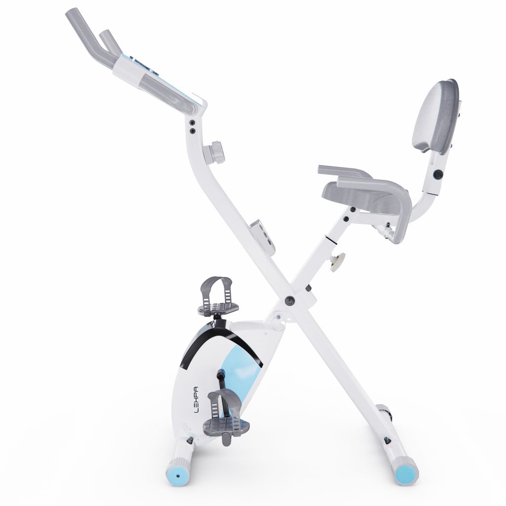 X-Bike LEXPA имеет компактные размеры в сложенном виде — 23 x 40 x 117 сантиметров, что позволяет легко хранить его даже в небольшом помещении. Транспортировочные ролики и компенсаторы неровности пола обеспечивают стабильность и безопасность во время занятий.