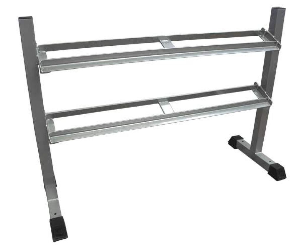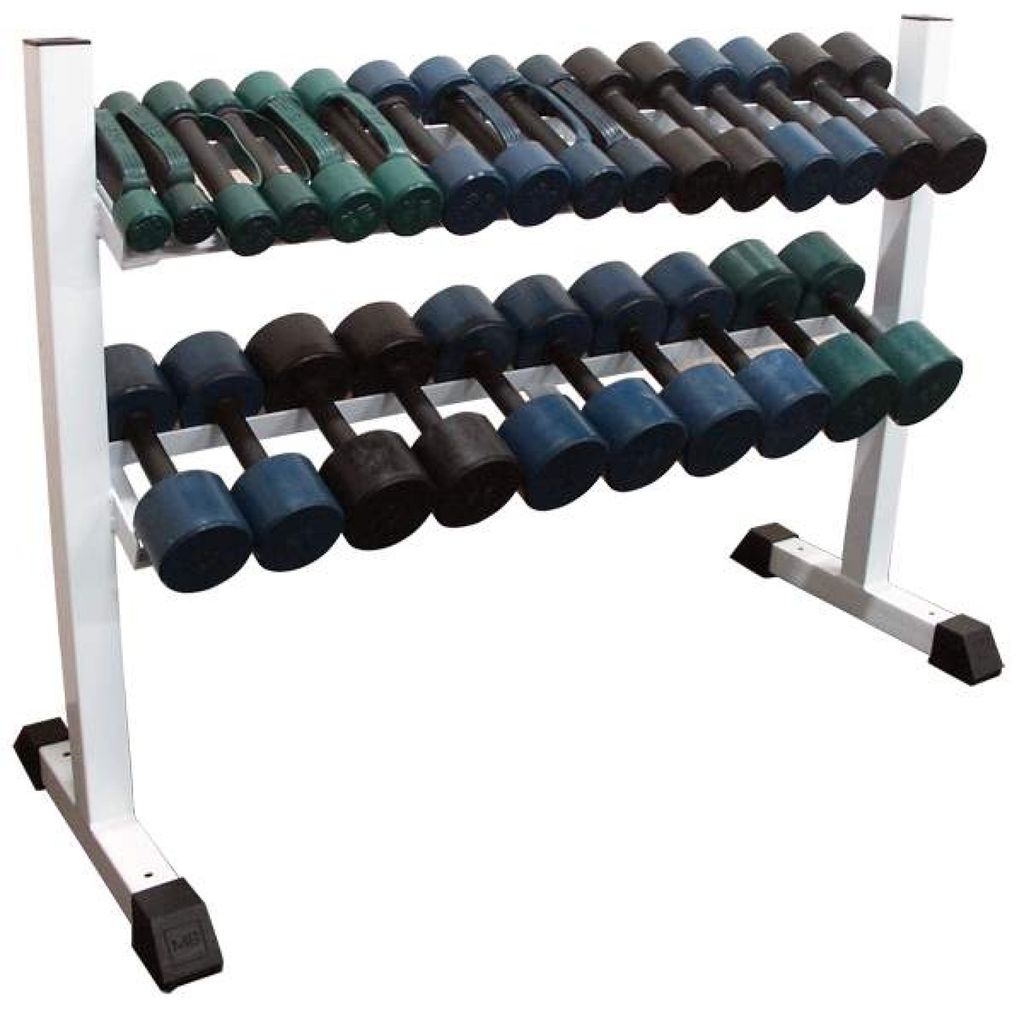 Стойка предназначена для хранения обрезиненных и хромированных гантелей «фитнес», а так же других гантелей с длиной ручки не менее 110 мм.