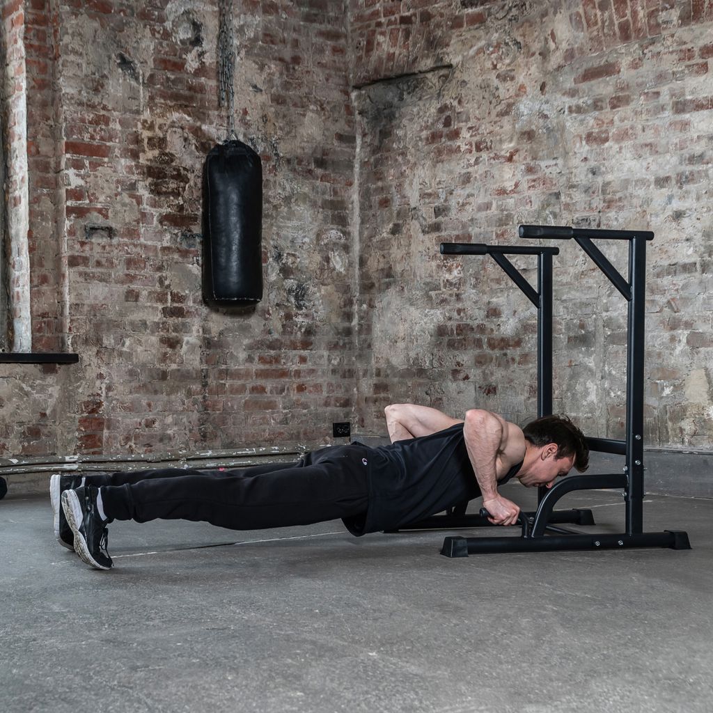 Стойка для отжиманий на брусьях. Предназначена для выполнения упражнений на развитие грудных мышц и трицепса.