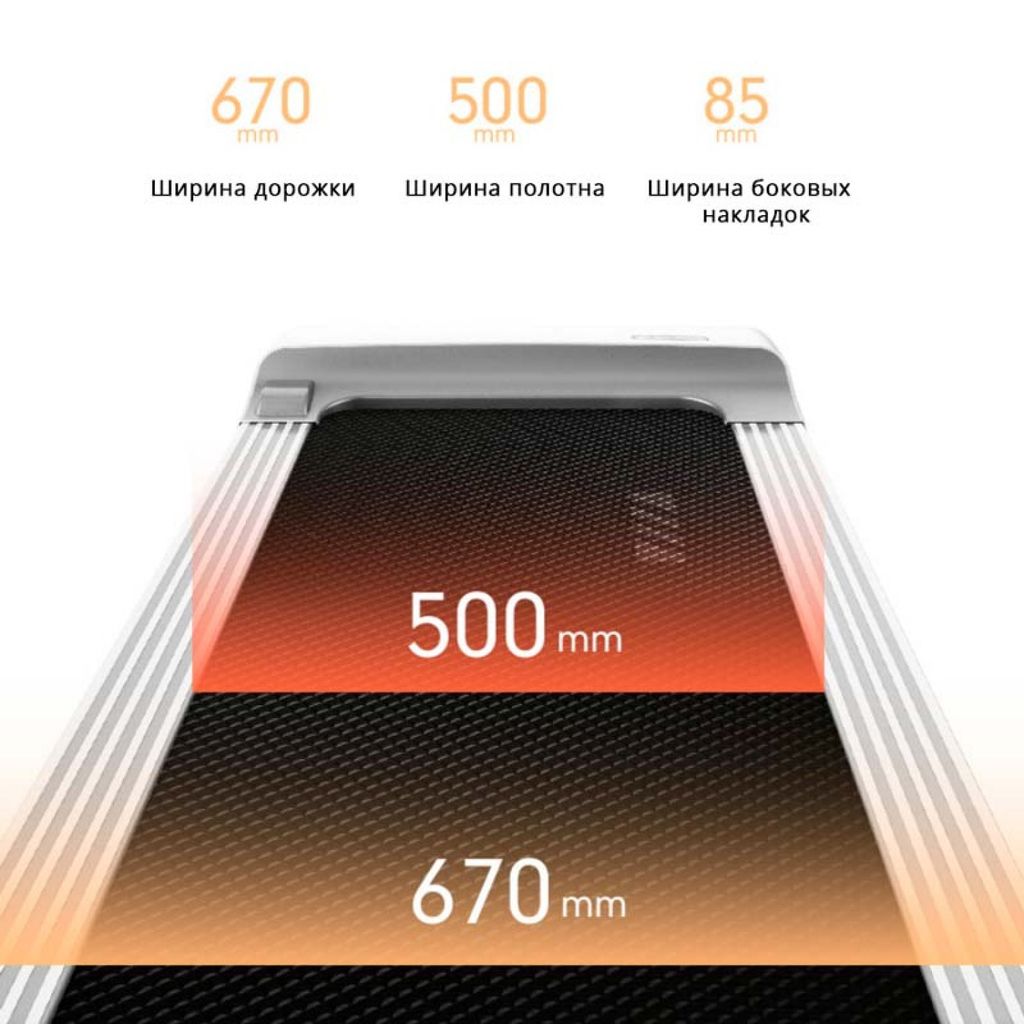 - Большая и комфортная поверхность для бега: ширина деки - 670 мм, ширина полотна - 500 мм, ширина боковых антискользящих накладок - 85 мм.