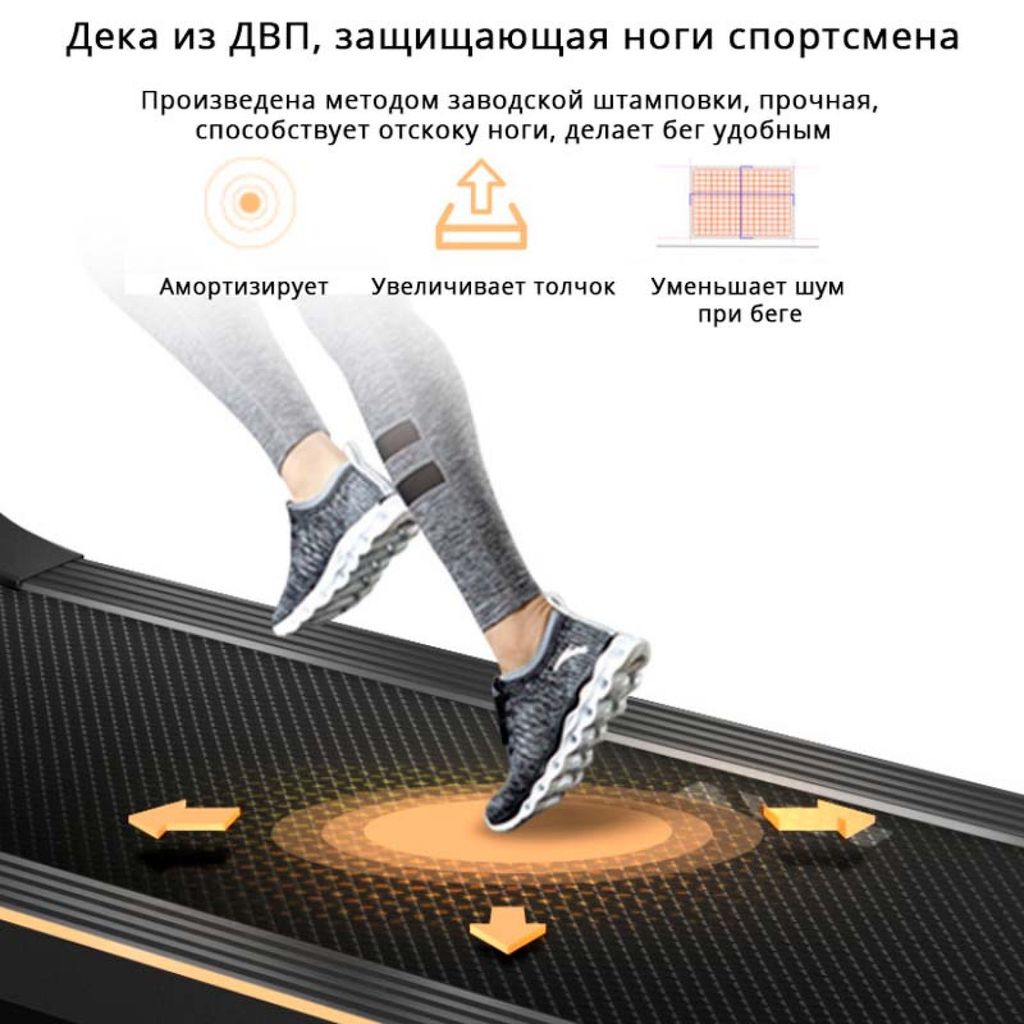 - Гибкая дека из штампованного ДВП - амортизирует стопу, уменьшает шум во время бега, увеличивает отскок и делает бег более комфортным.