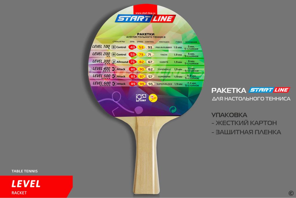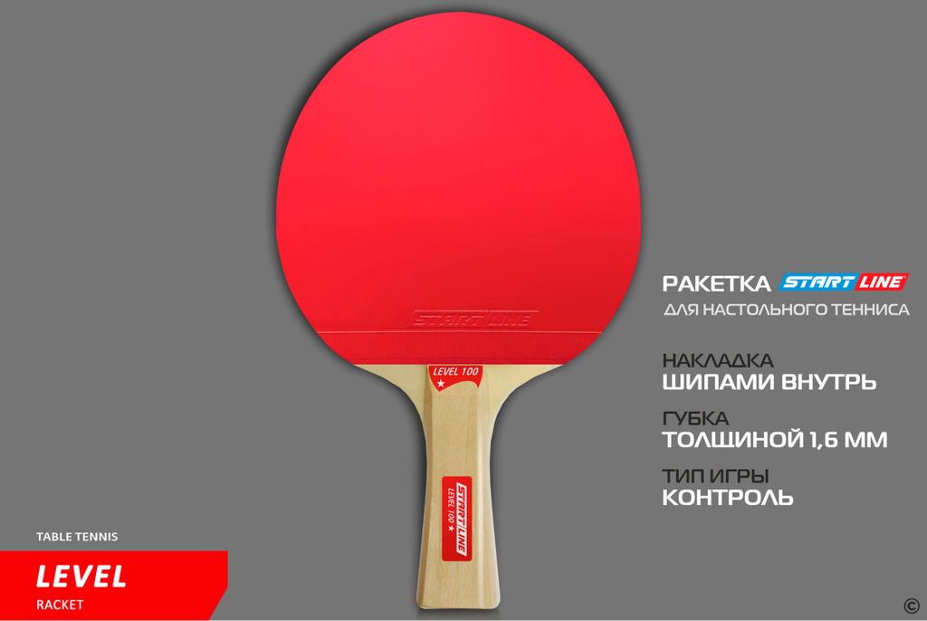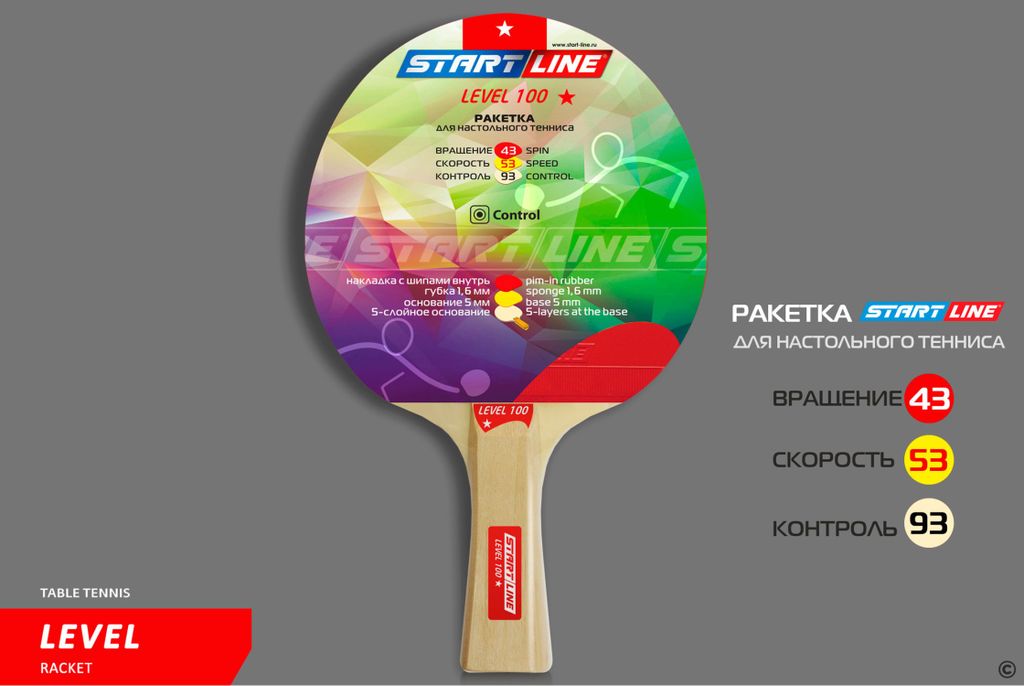 Ракетка для настольного тенниса Level 100 соответствует высокому современному стандарту качества, имеет обновленный дизайн и улучшенные технологические и игровые характеристики.