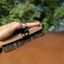 Очень мягкая щетка с обратной стороной из лакированного букового дерева. Щетина толщиной 25 мм. Черный полипропиленовый ремешок с никелированными латунными заклепками.сделано во Франции.