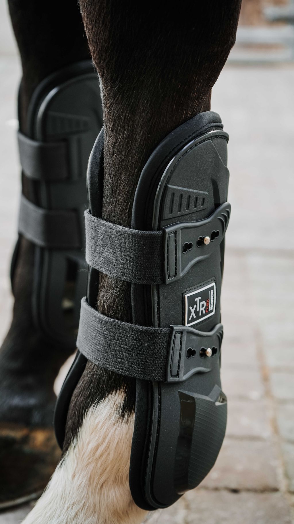 Легкие и анатомические ногавки для сухожилий обеспечивают превосходную защиту благодаря вентилируемой полиуретановой оболочке с подкладкой из смеси резины и неопрена для поглощения ударов и предотвращения натирания. застежка на шпильке с эластичным ре...