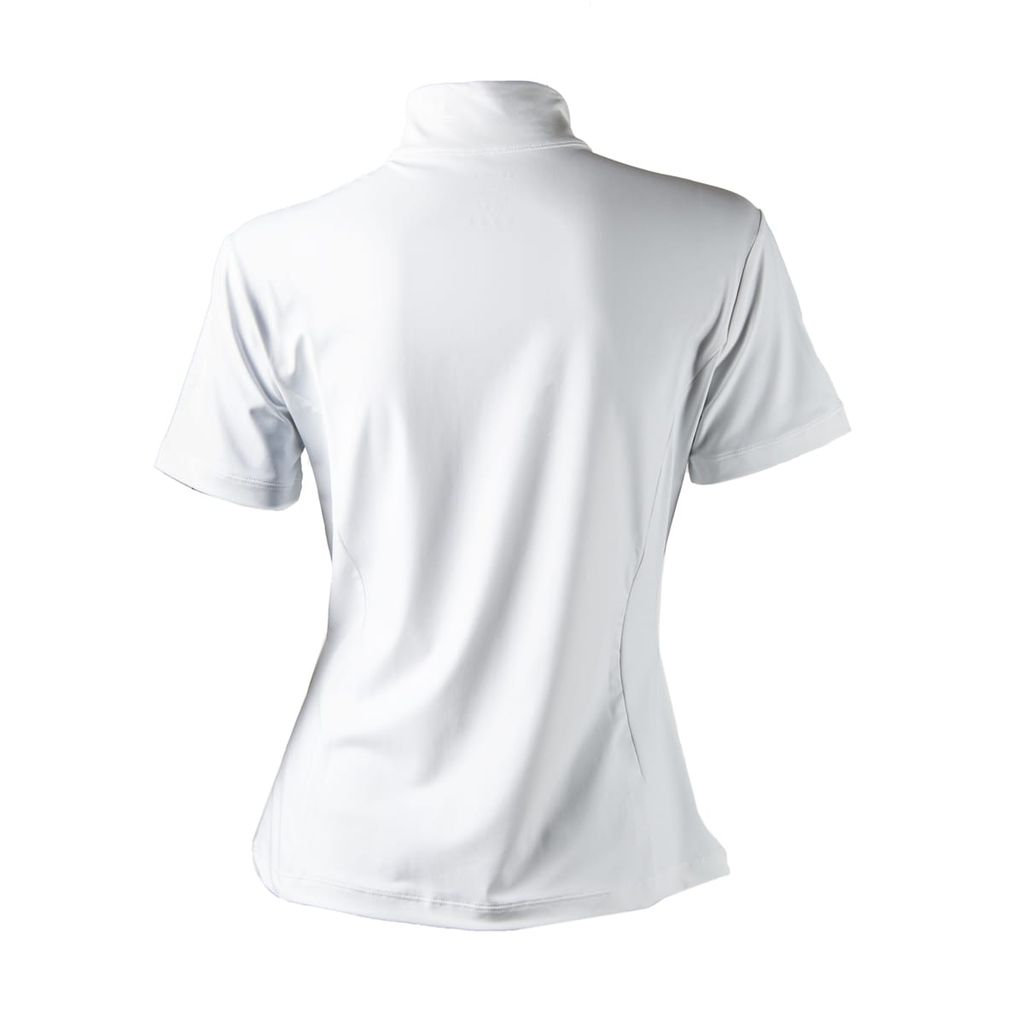Тонкая рубашка для выступлений (Competition Shirt) с приталенным силуэтом и коротким рукавом. Выполнена из эластичной лёгкой дышащей ткани. Спереди застегивается на молнии. На левом рукаве логотип "EQUIMAN".Рекомендуется машинная стирка при температуре 30 градусов, подходит автоматическая сушка