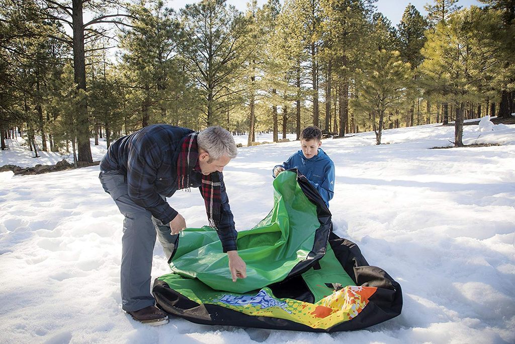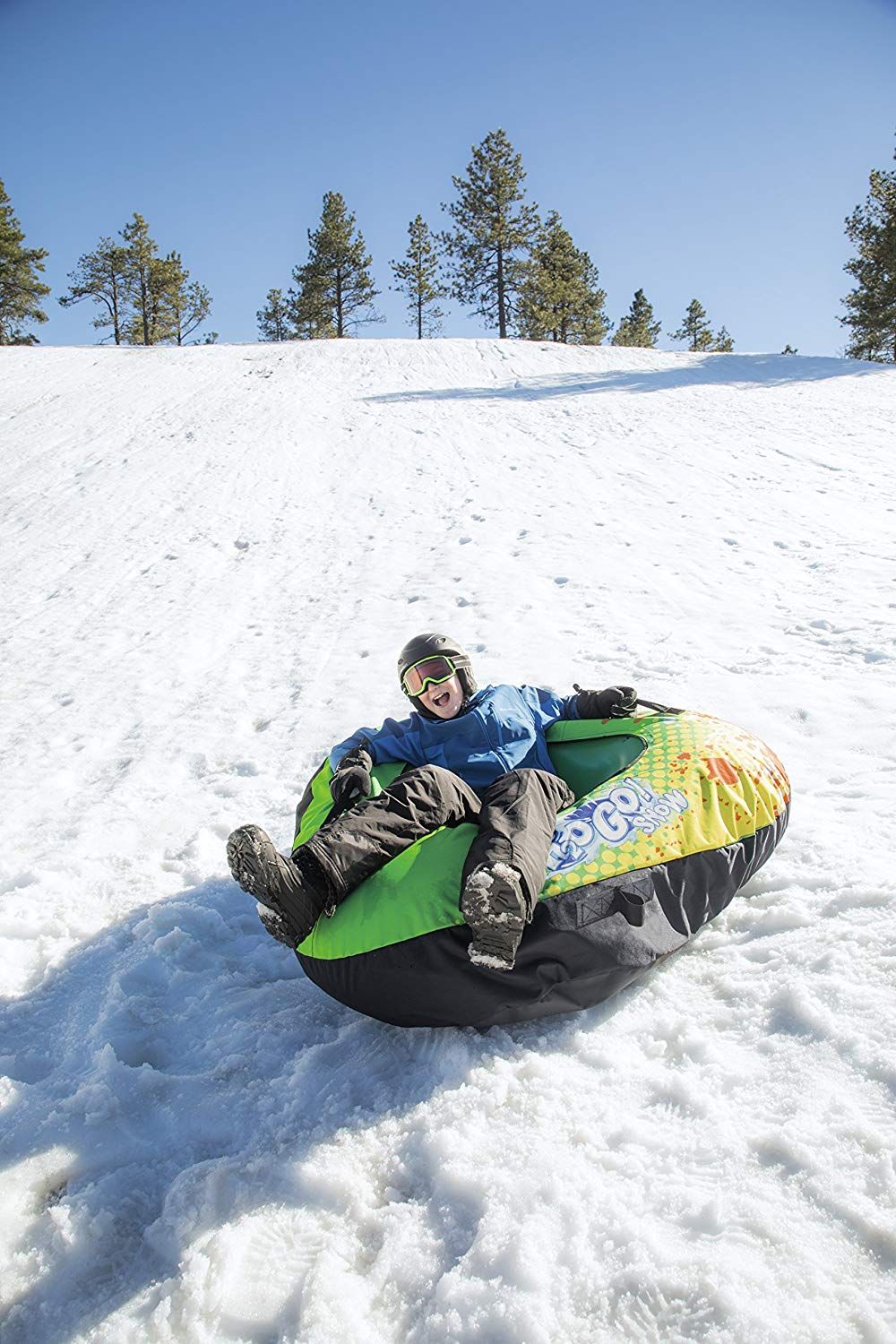 Размер упаковки: 33 x 9.5 x 30 см, Maксимальная нагрузка, кг: 95, Размер, см: 143, Материал (верх/низ): ПВХ/ПВХ, Расцветка: С принтом. Надувные бескамерные санки H2OGO! меняют представление о тюбингах. Теперь нет необходимости вставлять камеру внутрь тюбинг накачивается целиком, как обычный надувной матрас. Морозоустойчивый материал Polar-Shield™ сохраняет все свои свойства при минусовой температуре (до -20 градусов). Предназначен для одного пассажира. Ручки большого размера для удобного управления в перчатках. Клапан быстрого выпуска воздуха с блокировкой. В комплект входят: надувные санки; чехол для санок; ремонтная заплатка.