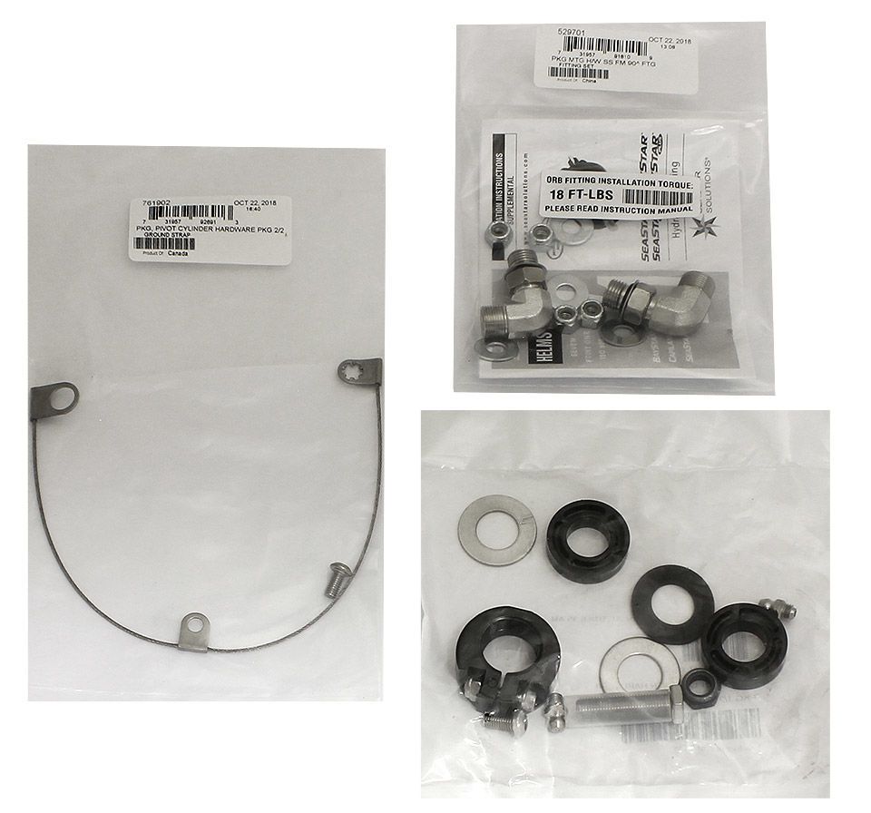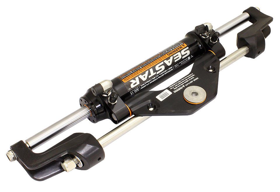 . Отдельно следует приобрести лишь рулевое колесо. Примерное количество оборотов полной перекладки руля: 4,75. Минимальный радиус изгиба шлангов: 10 см. В комплекте: рулевая машинка (гидронасос), гидроцилиндр (центральный монтаж), комплект фитингов, комплект крепежа, гидравлическое масло, комплект шлангов длиной 16 или 18 футов. Производитель: «SeaStarSolutions» (ранее «Teleflex»), США. .