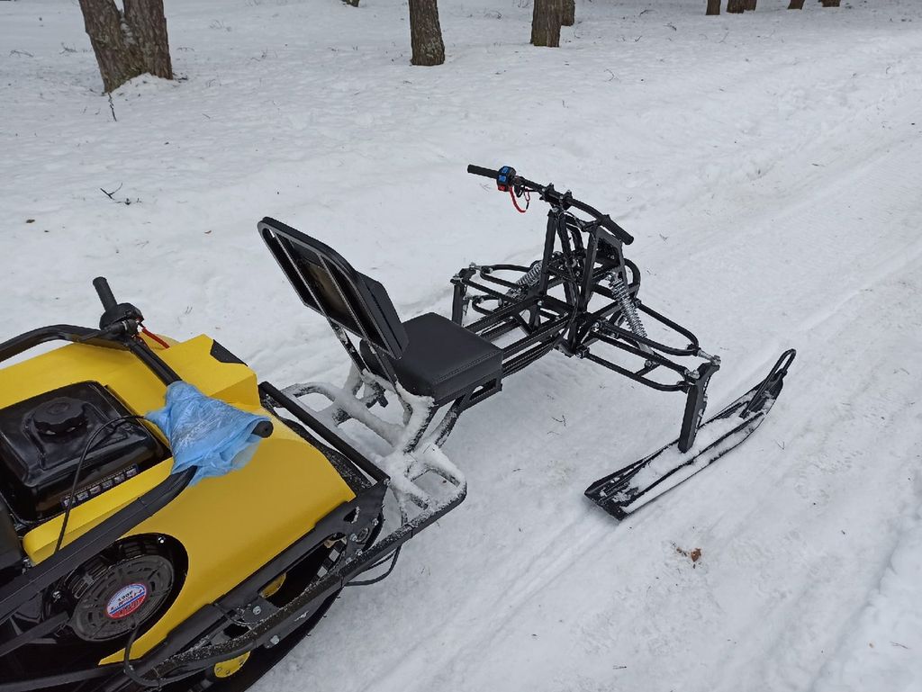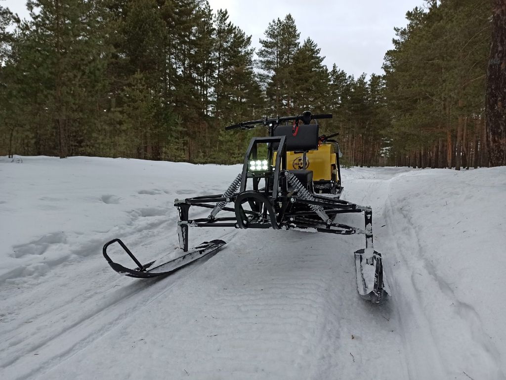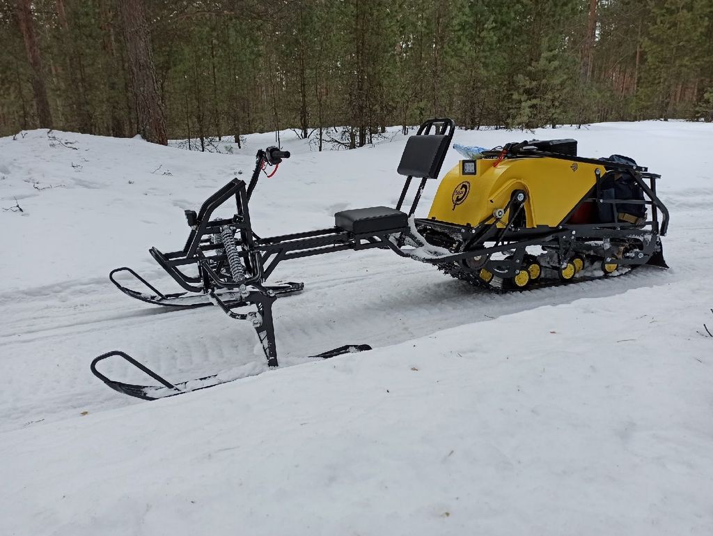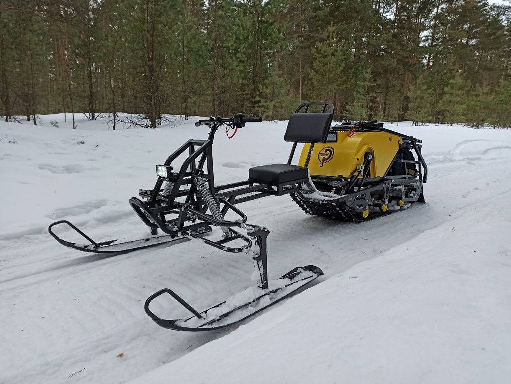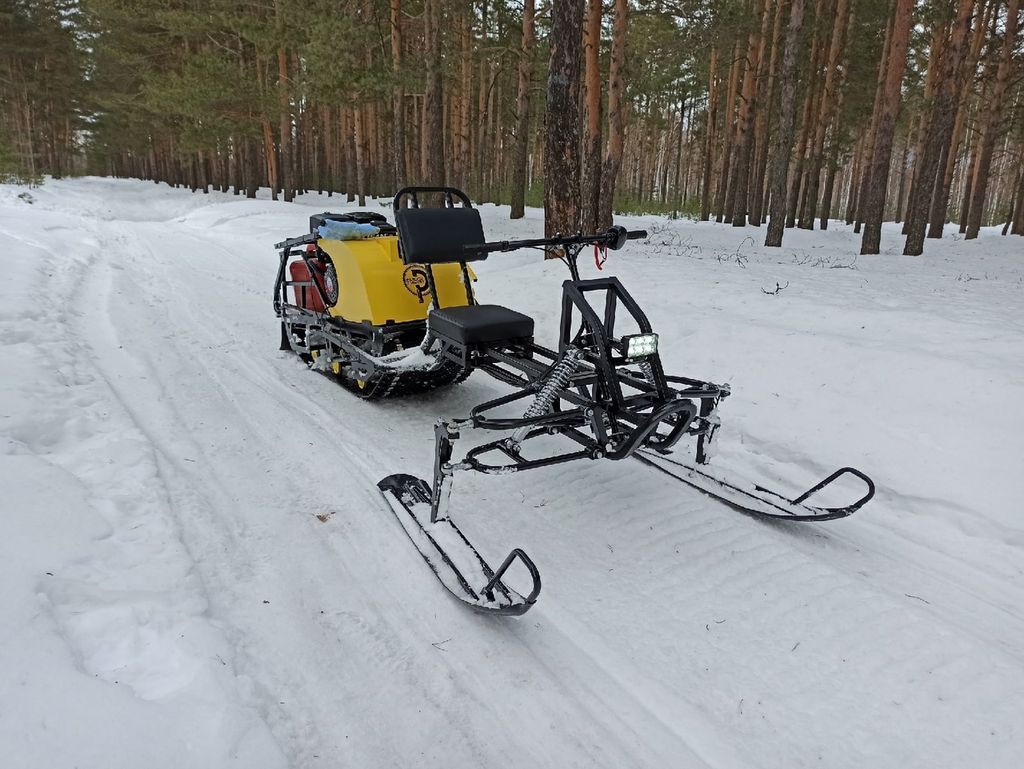 Лыжный модуль для мотобуксировщика "Рыбак". Разработан и спроектирован специально для мотобуксировщиков с учетом множества особенностей данной техники. Низкий центр тяжести дает невиданную ранее проходимость. Очень важной отличительной особенностью является повышенная устойчивость данного лыжного модуля, завалить на бок мотобуксировщик с нашим лыжным модулем практически не возможно. Еще одной из особенностей данного лыжного модуля является маневренность, радиус разворота составляет всего 7 метров, что является лучшим показателей среди лыжных модулей для мотобуксировщиков.