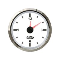 Часы белые с аналоговым циферблатом и нержавеющим ободком. Данный прибор используется в составе приборной панели судна. -