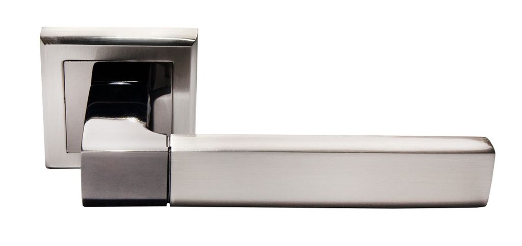 MH-28 S-SN/BN (на квадрат.накладке) (бел.никель/черн.никель) Ручка дверная "Fukoku" "Morelli"