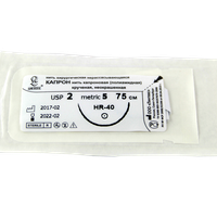 Капрон плетеный неокрашенный МР(5), USP(2), 75 см, игла колющая HR-40, 1/2 окружности, Россия (ООО "Линтекс") 15150A400750